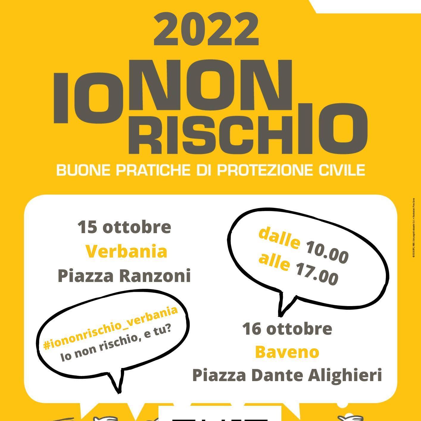Il 15 e 16 ottobre 2022, in contemporanea con le altre città italiane, anche VERBANIA e BAVENO partecipano alla campagna “Io non rischio”. Per scoprire cosa ciascuno di noi può fare per ridurre il rischio di alluvione gli appuntamenti sono il 15 ottobre in Piazza Ranzoni a Verbania Intra, e il 16 ottobre in Piazza Dante Alighieri a Baveno, sempre con orario dalle ore 10.00 alle ore 17.00.