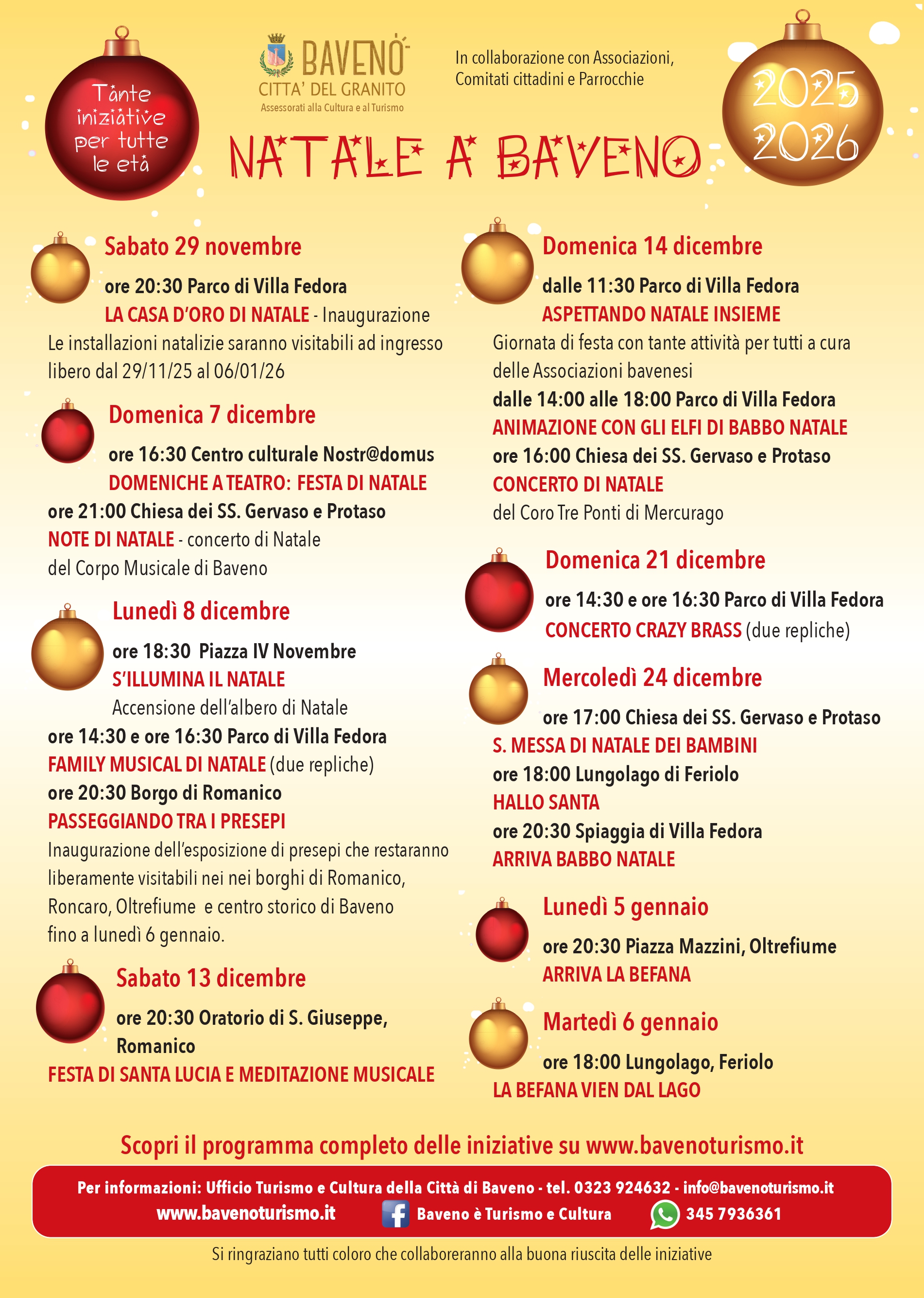 Gli altri appuntamento per il NATALE A BAVENO 2025–2026