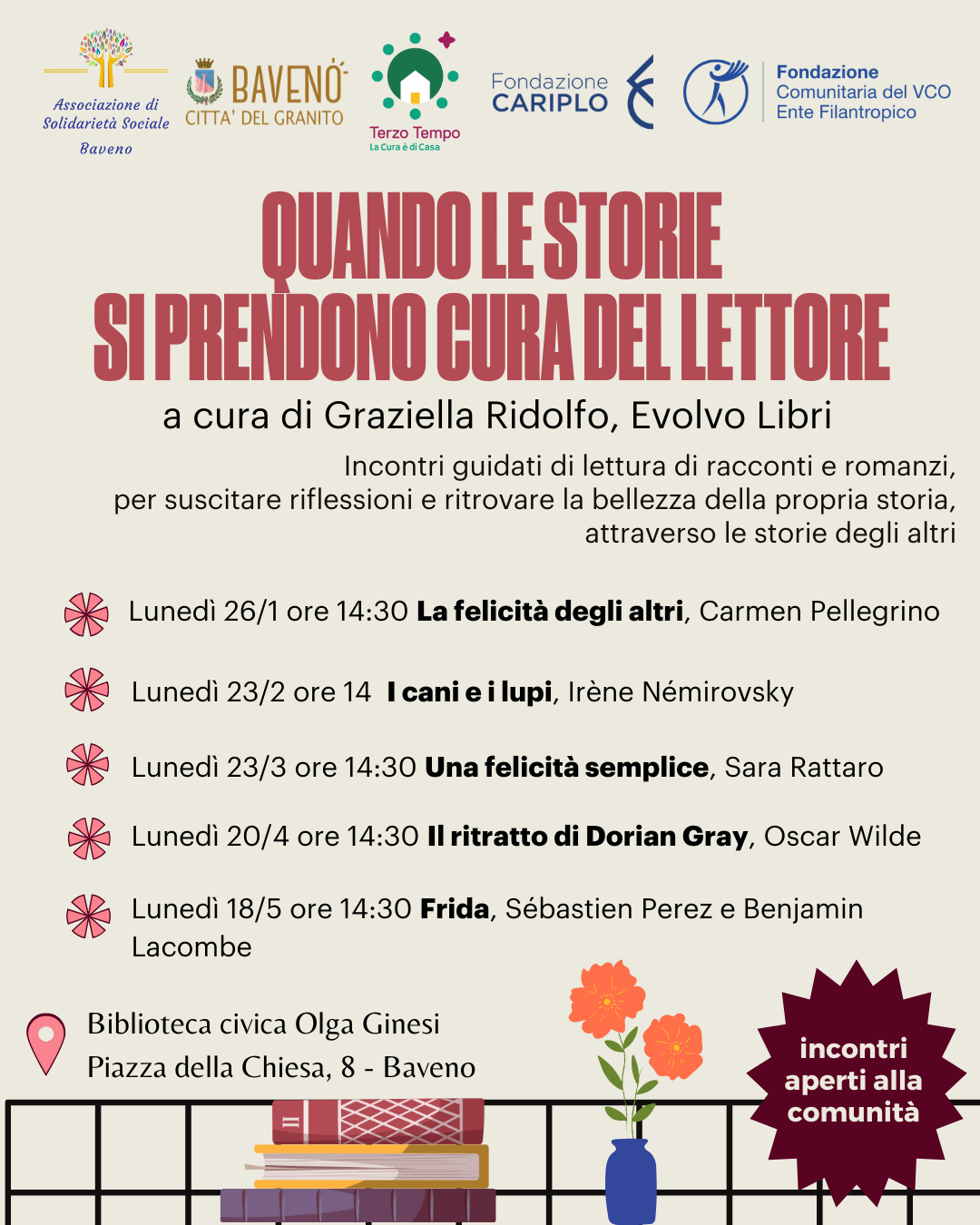 Incontri guidati di lettura, presso la Biblioteca civica Olga Ginesi, per suscitare riflessioni e ritrovare la bellezza della propria storia, attraverso le storie degli altri.