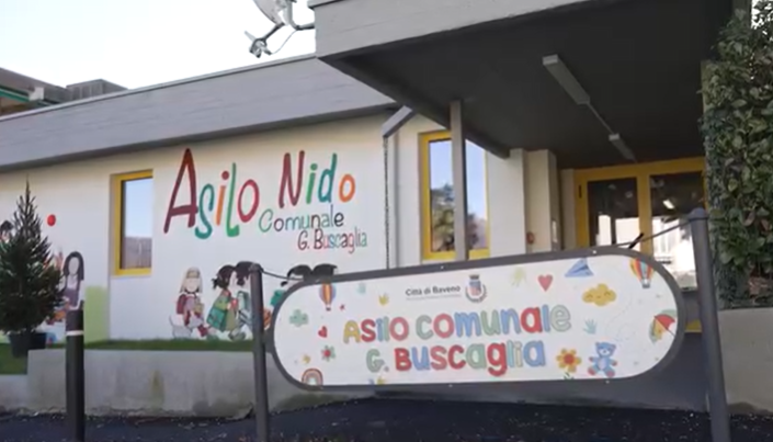 Riqualificazione energetica e funzionale dell’Asilo Nido Comunale “G. Buscaglia”, mediante la realizzazione di un articolato e completo intervento di coibentazione dell’involucro edilizio, sostituzione completa dei serramenti esterni con elementi nuovi a taglio termico e basso emissivi; sostituzione degli aerotermi di riscaldamento interno, con un nuovo e più modulabile ed efficiente sistema di riscaldamento a pavimento; formazione di un impianto ad energia solare per la produzione di acqua calda sanitaria e uno fotovoltaico; sistemazione dell’area ludica esterna.