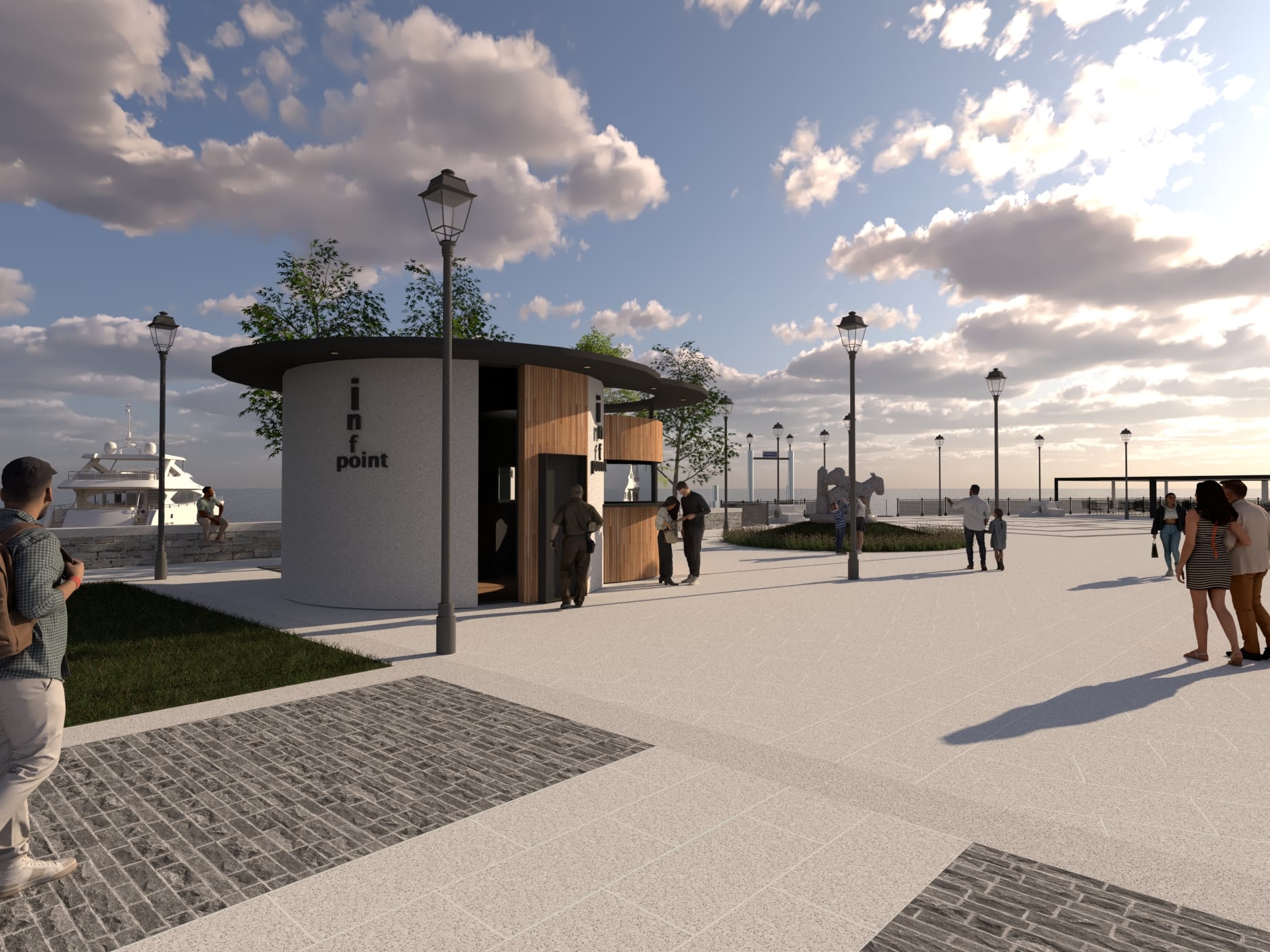 • Info Point turistico: una nuova struttura fissa, con annessi nuovi bagni, ispirata alle storiche biglietterie della Navigazione Lago Maggiore, offrirà accoglienza e servizi informativi ai visitatori.