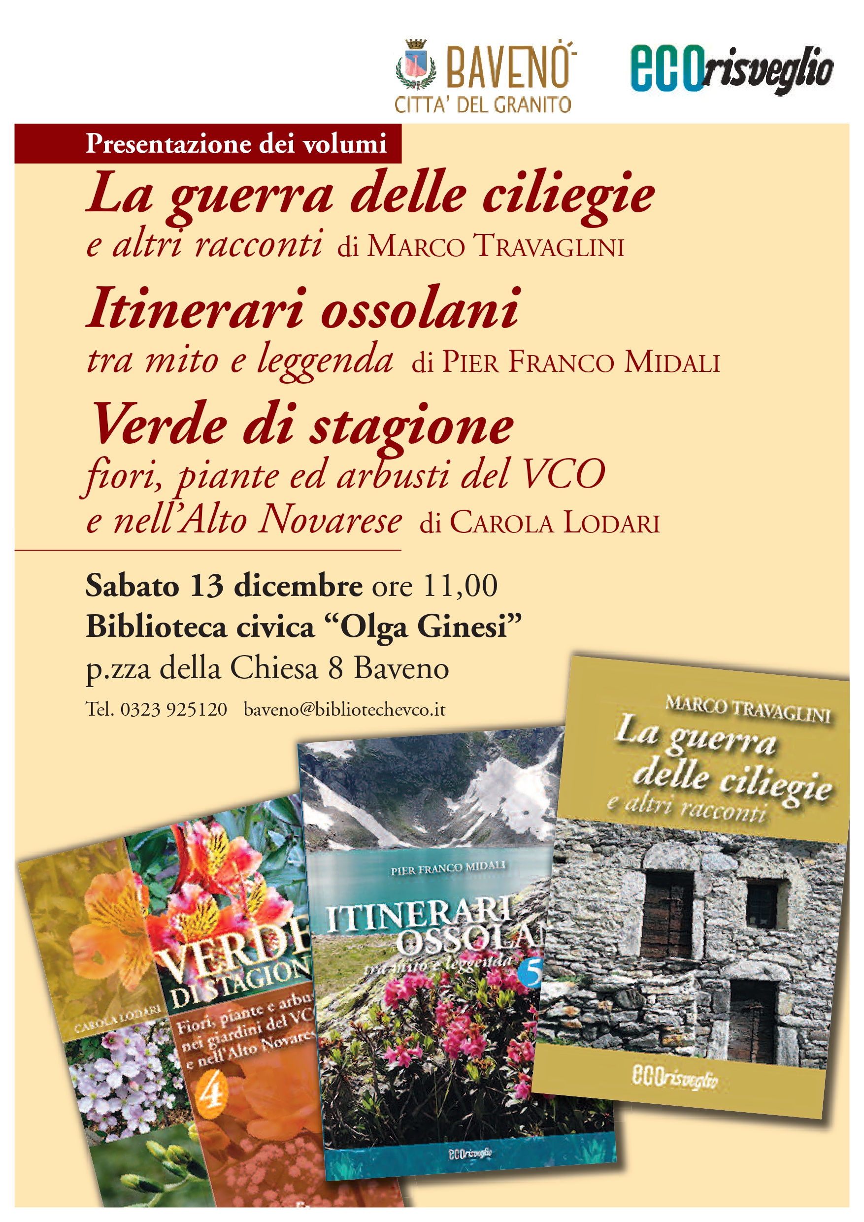 L’incontro si terrà sabato 13 dicembre alle ore 11.00 presso la Biblioteca civica “Olga Ginesi” situata all’ultimo piano dell’edificio in Piazza della Chiesa 8, Baveno.