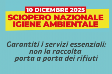 Sciopero nazionale venerdì 17 ottobre 2025 nel comparto igiene ambientale. Non è garantito il servizio di raccolta porta a porta e spazzamento stradal