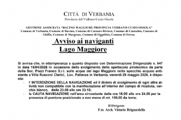 Avviso ai naviganti: Interdizione della navigazione nella giornata del 29/05/2026